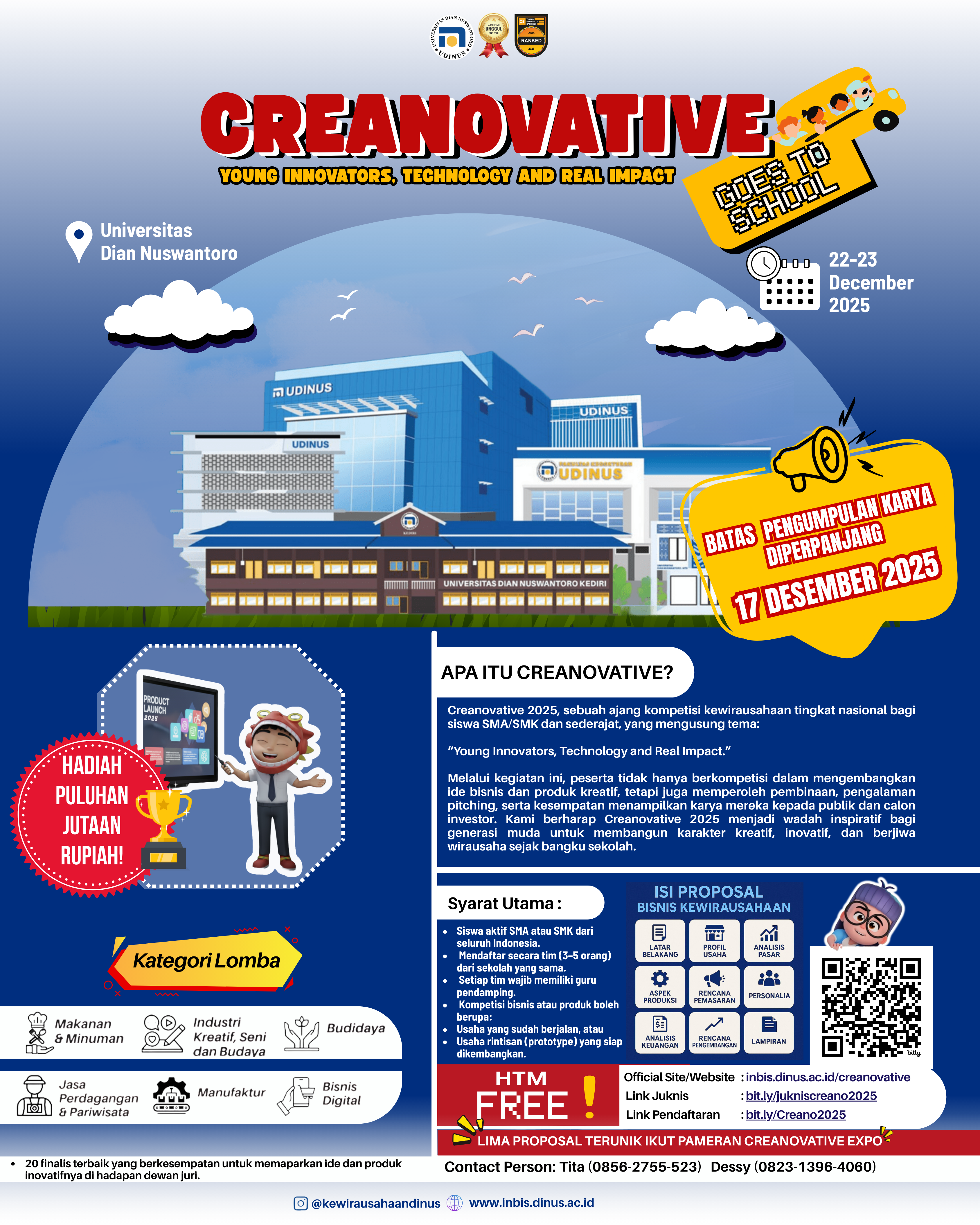 | Pengumuman Peserta lolos Creanovative | : | 18 Desember 2025 |